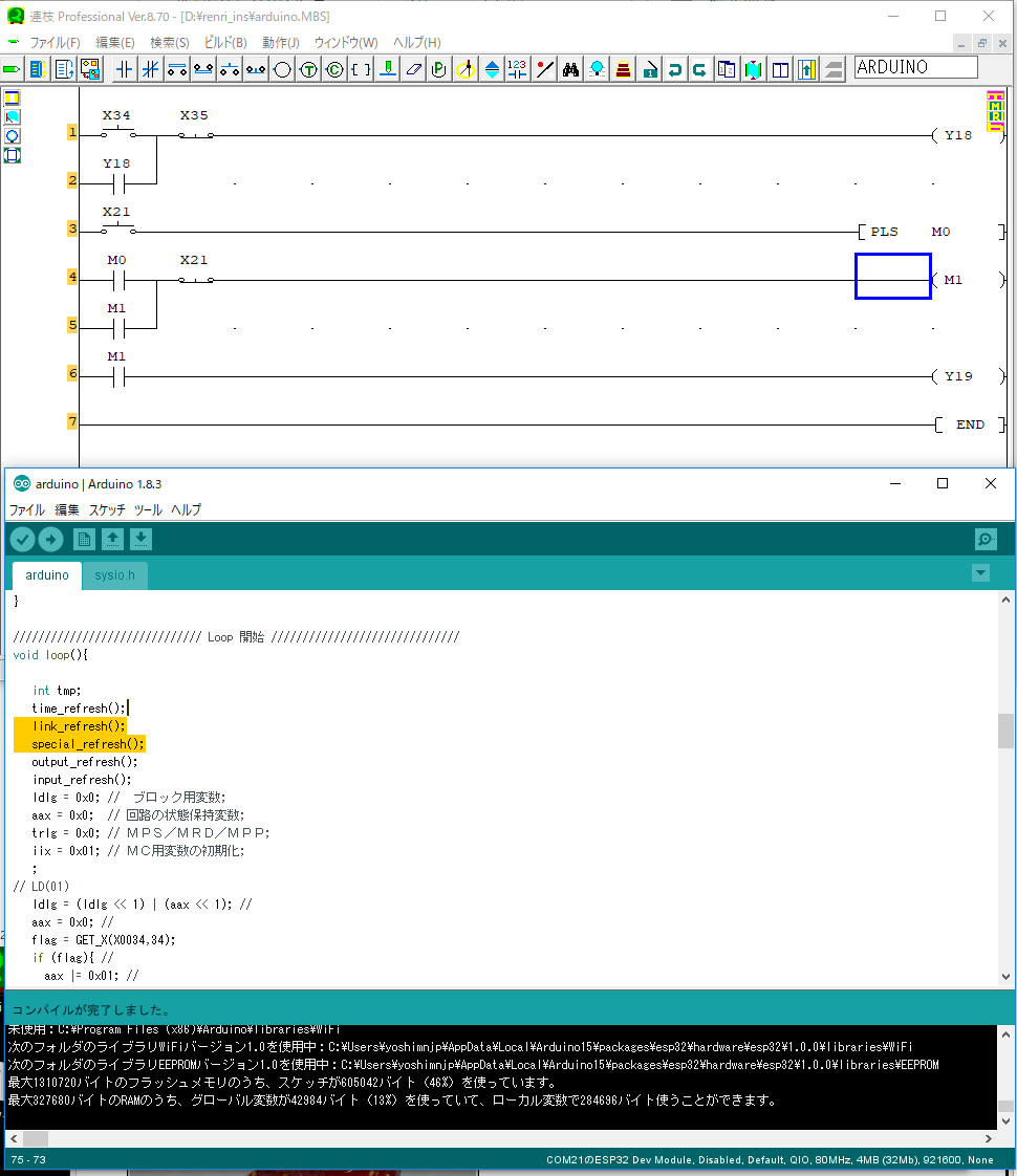 ラダー→Arduinoプログラム