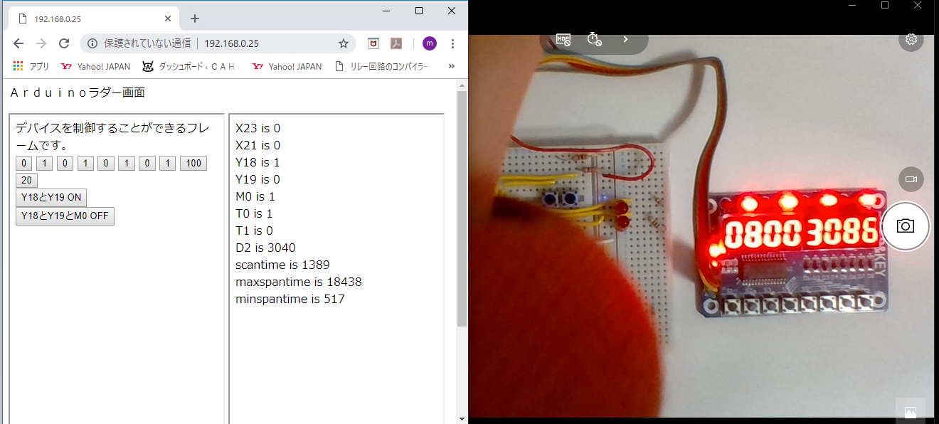 ブラウザの表示と実機画面