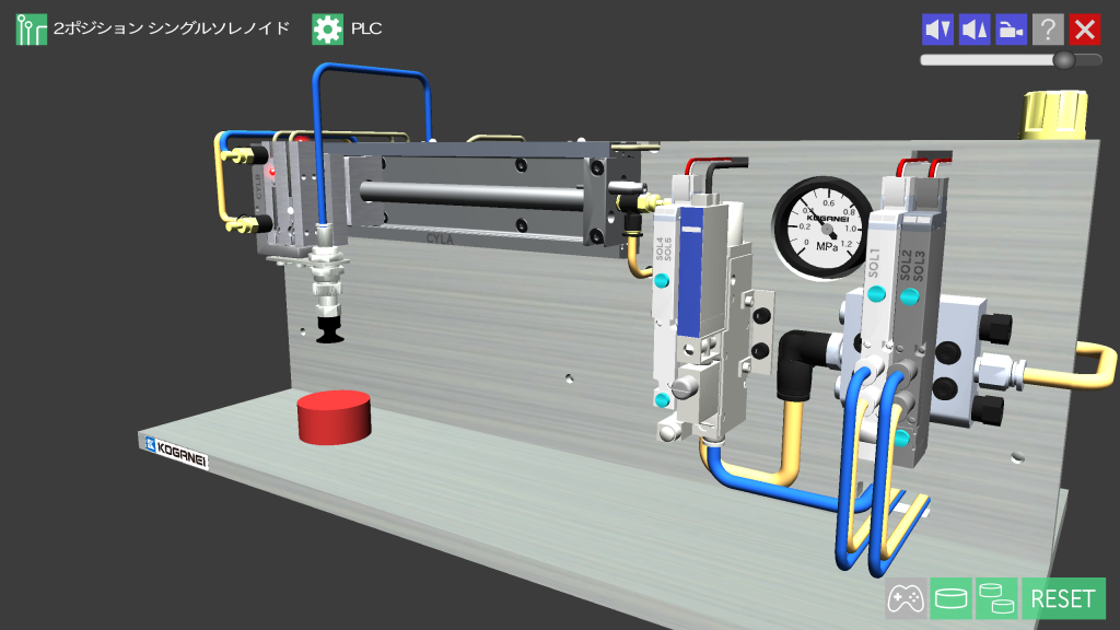 空気圧機器実習シミュレータとPLC実習ソフトウェア