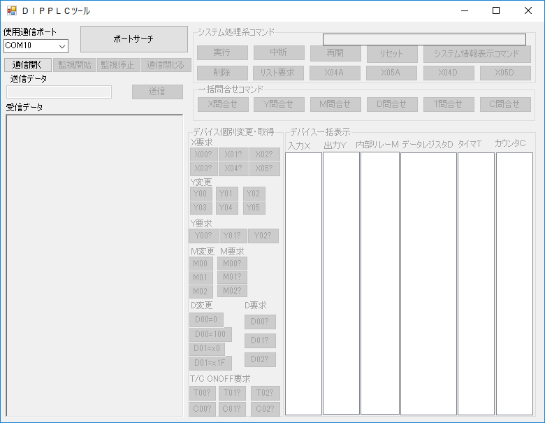 PLC-IO86(DIPPLC)の対応デバイスとコマンド